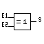 La fonction XOR est similaire au montage électrique suivant. Pour que la lampe s'allume il faut uniquement que E1 ou E2 soit fermer. Le tableau suivant nous montre le résultat.